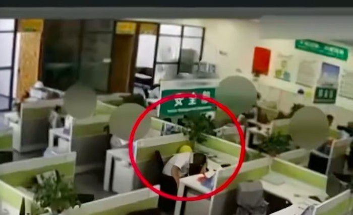 Zhang yang terekam sedang tidur di ruang kerjanya (via SCMP)