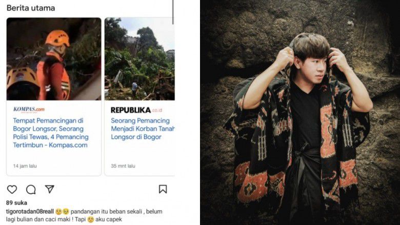 Melalui Instagramnya, Tigor Otadan mengunggah screenshot dua berita tentang musibah tanah longsor di Bogor, Jawa Barat yang menelan korban jiwa seorang polisi tewas dan empat orang lainnya tertimbun material longsor.