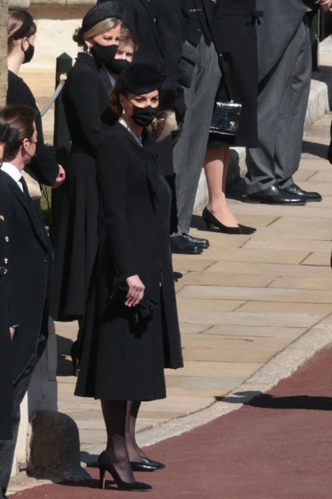 Kate Middleton yang mengenakan busana serba hitam saat anggota keluarga kerajaan meninggal dunia (harpersbazaar.com)