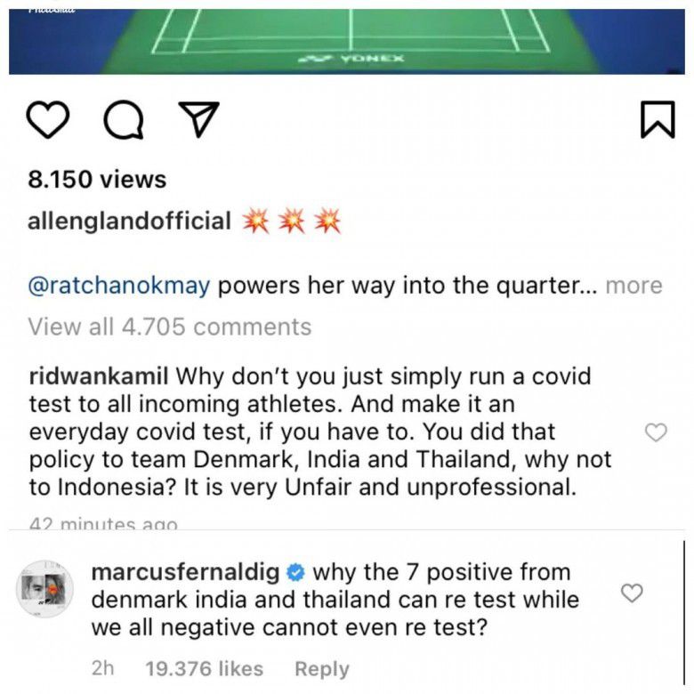 Bahkan salah satu pejabat daerah, Ridwan Kamil selaku Gubernur Jawa Barat, nekat memberi komentar di instagram BWF layaknya warganet pada umumnya.