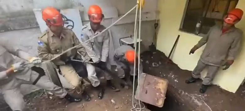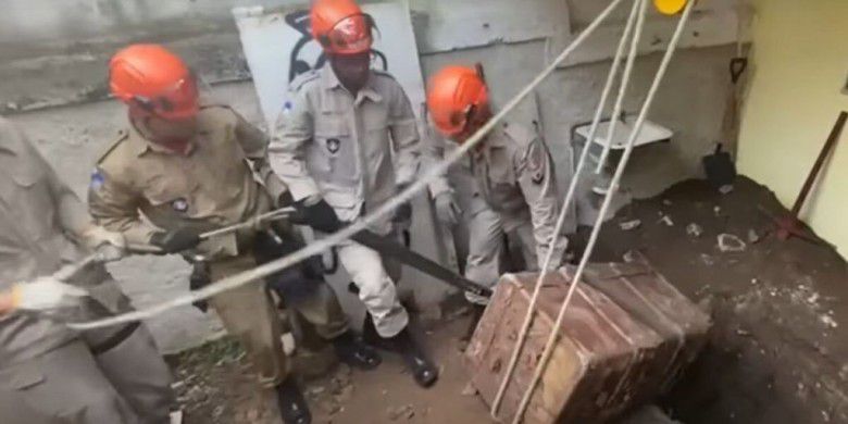 Pihak kepolisian sedang berusaha mengeluarkan kotak berisi Jefferson Machado (dailymail.com)