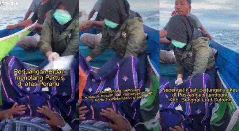 Viral seorang bidan tengah membantu persalinan pasien di tengah laut (via boombastis)