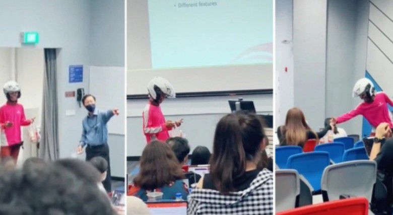 Dilansir dari World of Buzz, seorang bernama Jerald mengunggah momen ketika kurir makanan online masuk ke aula kampusnya. Momen tersebut ia bagikan melalui akun TikTok pribadinya, @power98jk. Video itu seketika viral ditonton sebanyak 917 ribu kali dan 86 ribu suka.