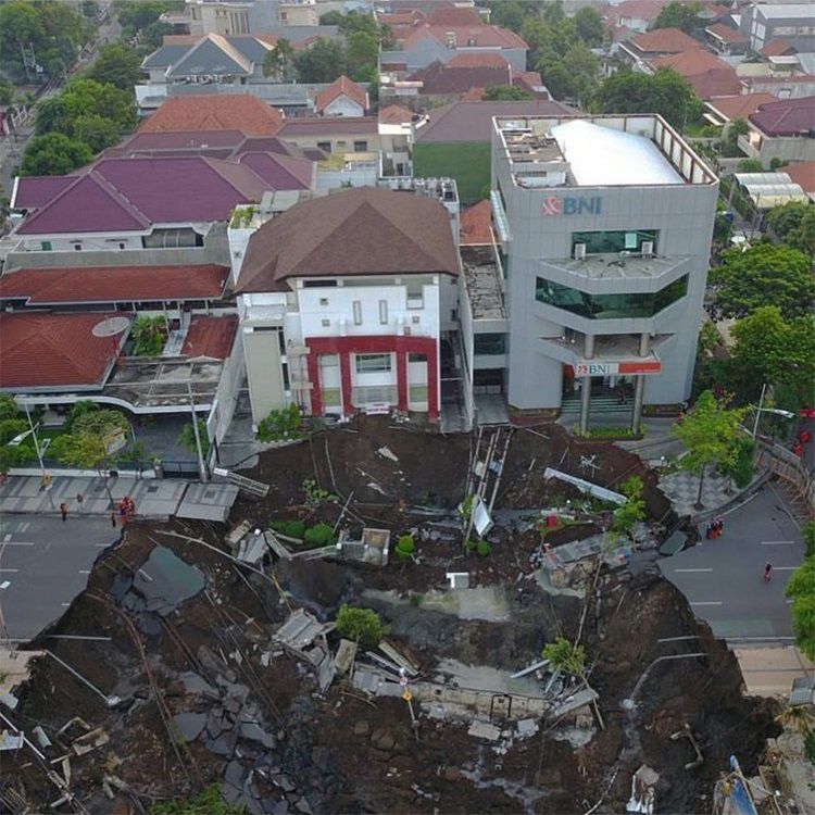 Foto Jalan Gubeng yang ambles (Twitter @infosurabaya)