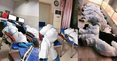 Tenaga medis yang kelelahan bekerja kemudian tidur seadanya dengan masih mengenakan APD (pikiran-rakyat.com)