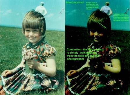 Kalo diperhatikan lagi, sosok misterius itu tampak seperti Annie yang lagi berdiri membelakangi kamera. Cuaca saat itu yang cerah membuat baju biru yang digunakan Annie tersamar, jadi keliatannya putih. Menurut ahli tentang UFO, ini adalah kasus yang sangat jelas kalo ada yang turun dari pesawat luar angkasa.