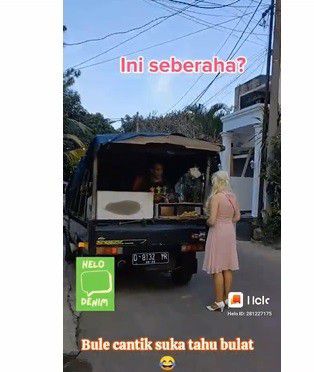 Seorang bule cantik ternyata suka dengan jajanan khas Indonesia, tahu bulat . Dalam sebuah video yang tersebar di sosial media, bule itu nampak membeli tahu bulat yang lewat di dekat tempat tinggalnya. Kocaknya, bule yang tidak disebutkan namanya itu mencoba bicara dengan si penjual tahu bulat itu.