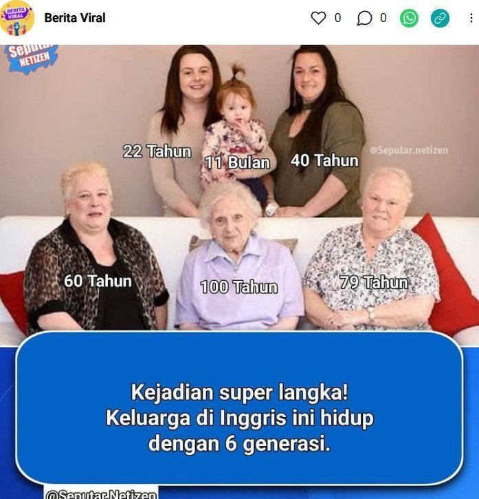 Heboh keluarga di Inggris yang memiliki 6 generasi dan hidup di waktu yang sama (via instagram.com)