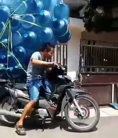 Dalam mengantarkan pesanan ke rumah pelanggan, biasanya tukang galon air menggunakan motor . Sekali antar, biasanya mereka membawa tidak hanya satu galon air saja, bisa bawa sampai 3 bahkan 4 galon air sekaligus.