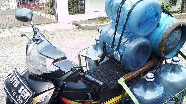 Sudah jelas meskipun motor para tukang galon air tidak baru, yang penting tenaganya masih kuat untuk dipakai membawa banyak galon air. Memang salut banget ya tukang galon air dalam bekerja.