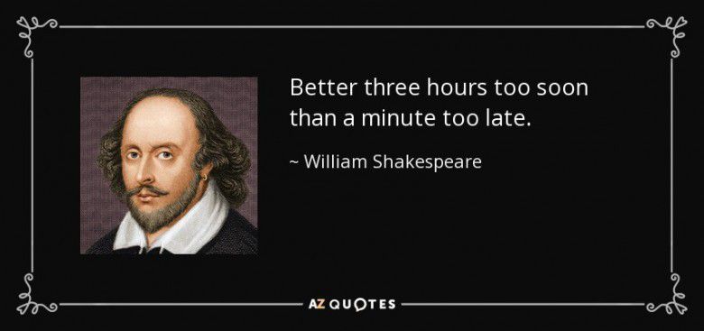 "Lebih baik datang 3 jam lebih awal daripada terlambat satu menit" - William Shakespeare