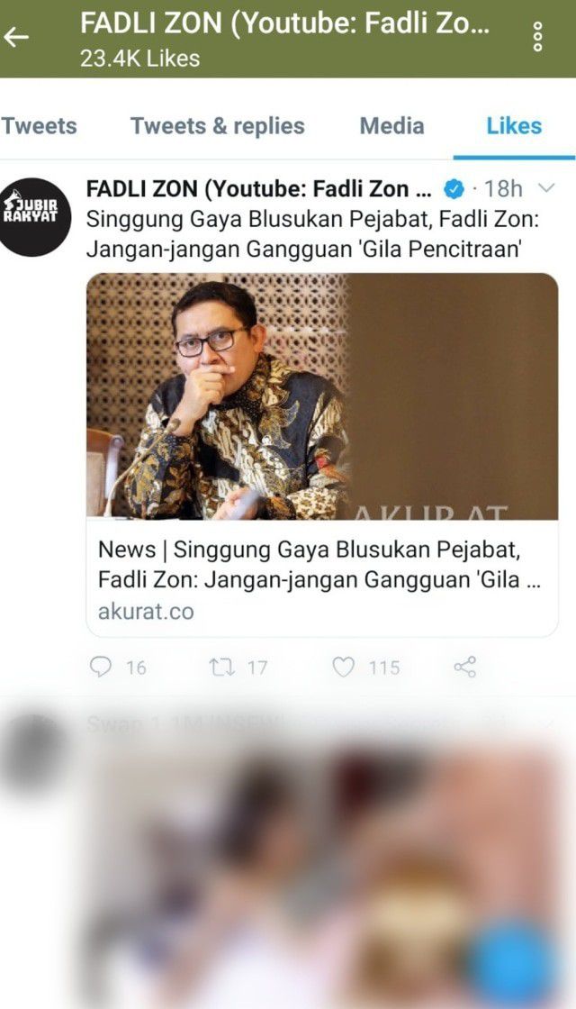 Dilansir dari kumparan.com, dalam pantauan melalui riwayat like ada salah satu postingan yang menampilkan video porno yang di-like Fadli Zon.