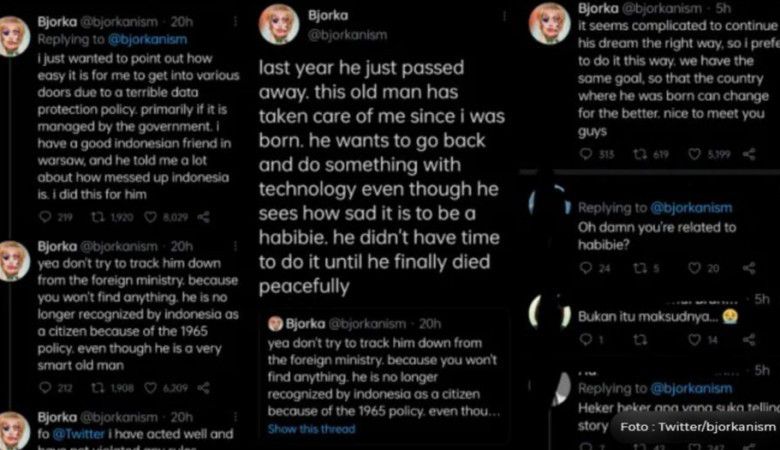“Tahun lalu dia baru saja meninggal. Orang tua ini telah merawat saya sejak saya lahir. Dia ingin kembali dan melakukan sesuatu dengan teknologi meskipun dia melihat betapa sedihnya menjadi Jabibie. Dia tidak punya waktu untuk melakukannya sampai akhirnya dia meninggal dengan tenang,” tulis Bjorka.