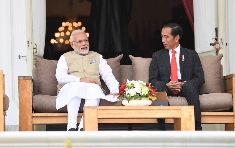 Keduanya sempat melihat-lihat model layangan yang dipajang dengan gambar-gambar karakter pewayangan khas Indonesia dan gambar karakter kahs India seperti Mahabharata. Jokowi pun menerbangan salah satu layangan bermotif bendera India, sementara Modi menerbangkan layangan bendera berlogo Asian Games 2018.