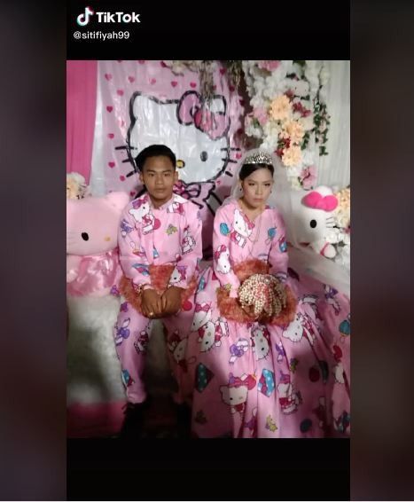Pasangan Menikah dengan Busana dan Dekorasi Hello Kitty (TikTok)