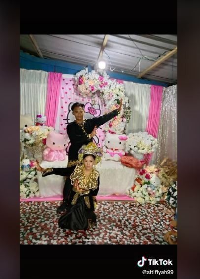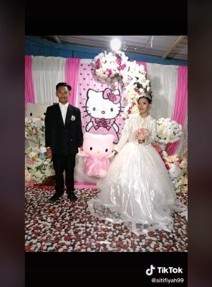 Pasangan Menikah dengan Busana dan Dekorasi Hello Kitty (TikTok)