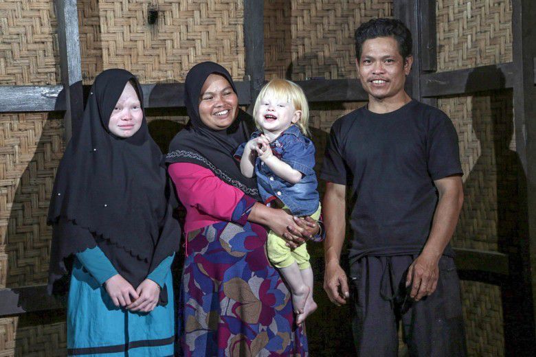 "Tidak jelas eyang atau buyut saya ke berapa yang seperti itu. Cuma yang saya tahu ini disebut masalah gen," terangnya sambil memperkenalkan dua anaknya yang memiliki kulit albino.
