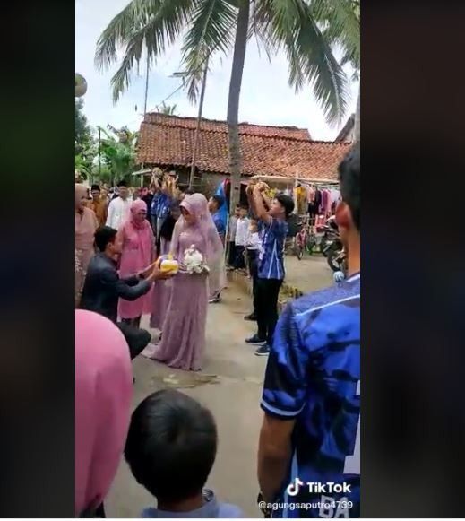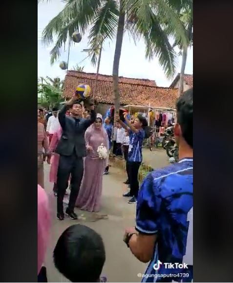 Viral Pernikahan Unik, Pasangan Pengantin Disambut Bola Voli (TikTok)