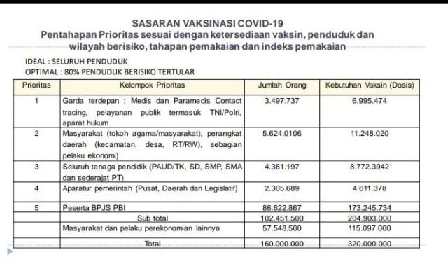 Prioritas penerima vaksin Corona. Foto: Kemenkes RI
