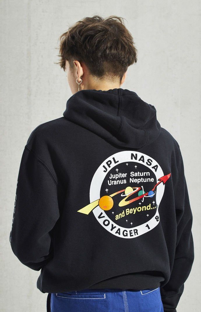 Selain menghias sepatu kets mereka, umtuk hoodies, ransel, dan jaket juga dipatri emblem original NASA. Emblem ini terdiri dari kata "NASA" dalam model yang langsung mudah dikenali oleh para geek. Yakni gaya emblem yang melompat kembali ke tahun 1975.