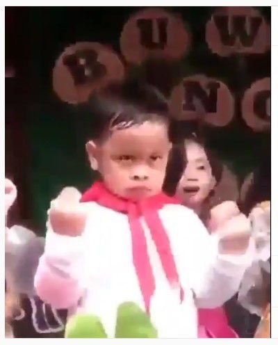 Bisa jadi nih gengs anak dalam video itu saking tegang dan groginya berada di panggung, dia kesulitan mengatur emosi dan ekspresi. Alih-alih menikmati lagu dengan gembira justru berkonsentrasi penuh memandang ke depan.