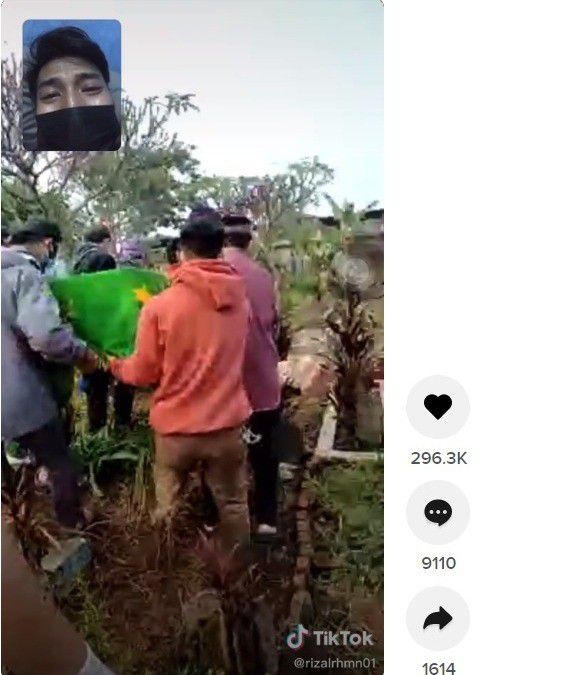 Rizal Rahman, pria yang menyaksikan prosesi pemakaman sang ibunda hanya melalui ponsel (tiktok.com)