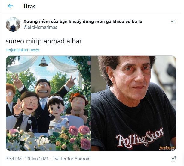 Netter dengan akun @aktivismarimas menyebut penampilan Suneo saat ini justru mirip dengan penyanyi ternama Ahmad Albar.