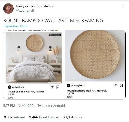 Viral Twit Tampah Bambu Dibuat Hiasan Dinding Dijual hingga Rp4 Jutaan (Twitter)