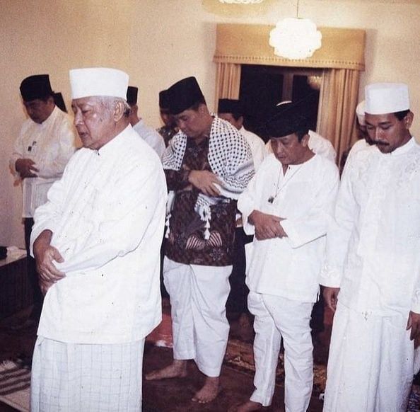 Sebuah foto viral Presiden Soeharto beredar di jagat dunia maya. Soeharto dalam foto itu sedang melakukan Salat dengan dua orang di belakangnya. Soeharto menjadi imam Salat kala itu.
