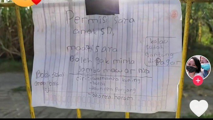 Yulia Wulandari mengunggah isi surat yang ditulis Sidik. Sidik dengan sopannya meminta buah jambu mawar milik Yulia yang memang ditanam di pekarangan rumahnya. Sidik sepertinya sering melewati rumah Yulia dan melihat jambu segar di pohon yang tergantung.
