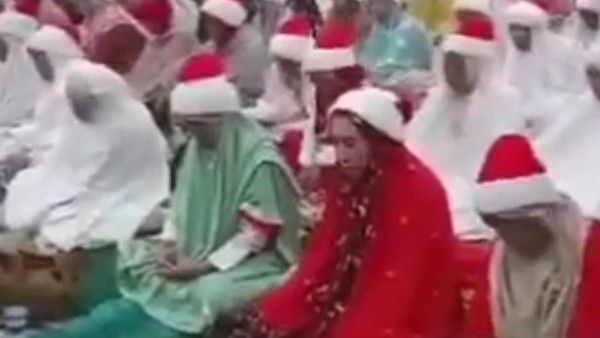 Viral di media sosial video para jamaah di Masjid Agung Ciamis pada menggunakan ciput berwarna merah putih yang persis seperti topi santa.