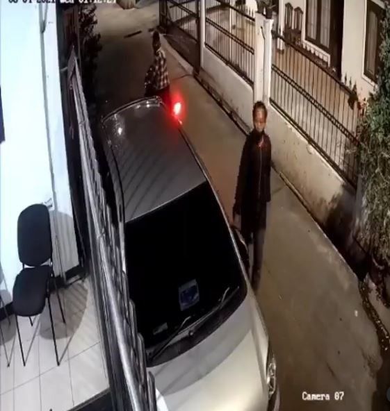 Berdasarkan rekaman kamera CCTV yang diunggah akun Instagram @jakarta.terkini, terlihat dua orang pria yang berboncengan mengendarai sepeda motor berhenti persis di samping sebuah mobil yang terparkir.