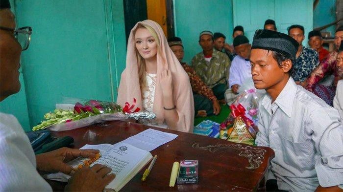 Dalam foto yang tengah jadi viral itu, nampak Karna Radheya dan Polly Alexandria robinson duduk bersandingan dan menghadap penghulu.