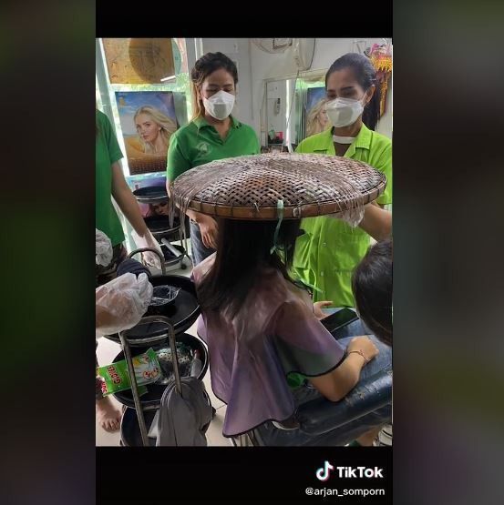 Viral Salon Mengecat Rambut dengan Tampah (tiktok.com/@arjan_somporn)