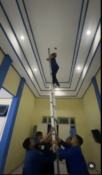 Seperti yang diunggah oleh akun Instagram @undercover.id, tampak para petugas Damkar sibuk bergotong menggantikan lampu seorang warga. Terlihat jika atap rumah warga tersebut sangat tinggi dan tidak adanya sandaran untuk tangga.