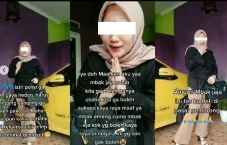 “Istri polisi ga boleh gaya hedon, harus compang-camping ga boleh pake tas mahal walaupun kalian lahir dari keluarga tajir tetep harus terlihat gembyeL,” tulis wanita tersebut di dalam video unggahannya yang berdurasi 14 detik.