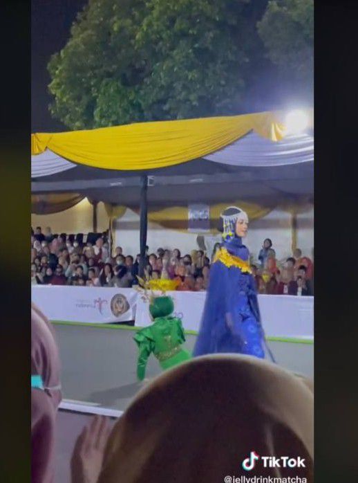 Seorang model di Jember Fashion Week tak sengaja terjatuh, tapi tetap terlihat profesional (tiktok.com)
