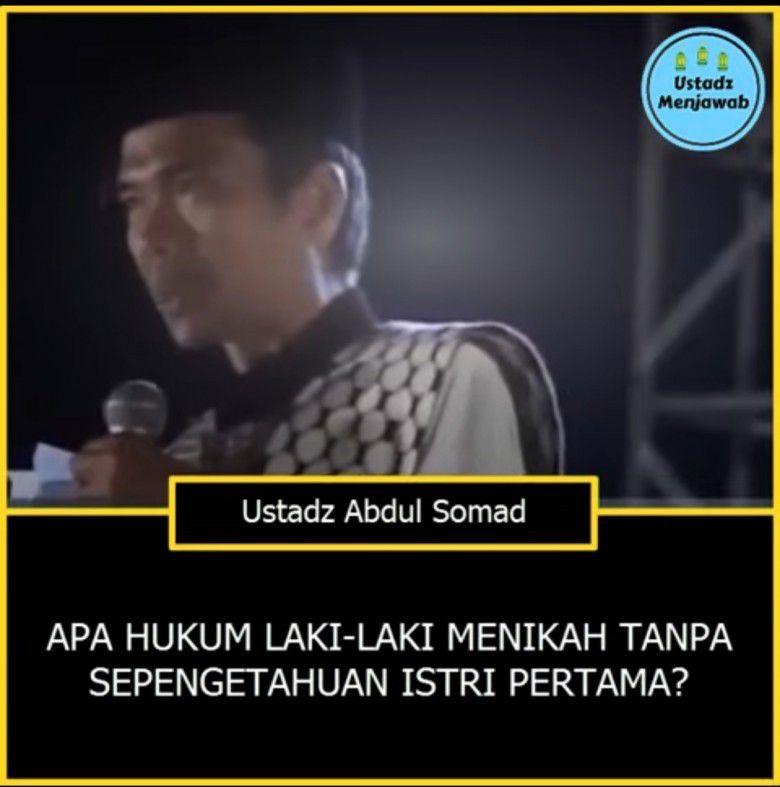 “Maka para ibu-ibu tidak usah cemas, para bapak tidak akan bisa menikah sebelum ibu membubuhkan tanda tangan setuju, kecuali nikah siri. Kalau dia nikah secara syar'i menurut hukum fikih. Menurut hukum Undang-Undang Indonesia, tidak ada satupun pak KUA di Indonesia yang berani menikahkan suami orang dengan perempuan lain tanpa ada surat izin dari istri pertama. Kalau ada, berarti nikahnya nikah siri,” tandas Ustadz Abdul Somad.