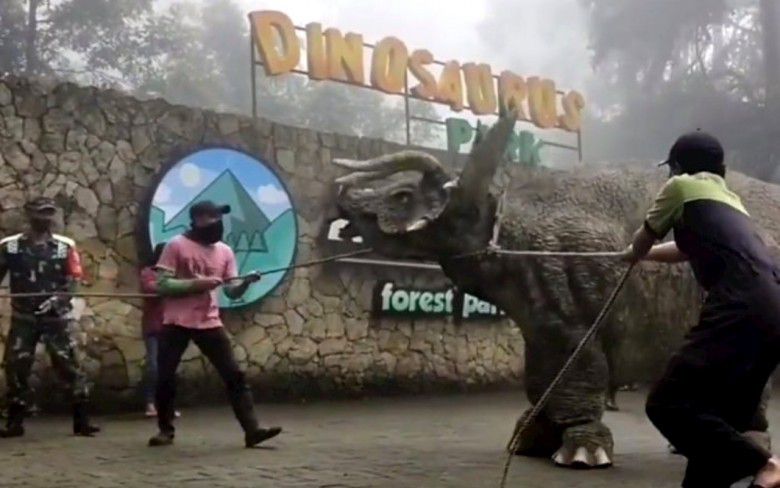 Pria yang biasa disapa Romo Topan itu menyampaikan, dinosaurus yang ada di video tersebut digerakkan dua orang yang berada di dalam kostum hewan prasejarah tersebut.