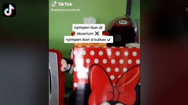 Dalam sebuah video yang diunggah oleh akun Tiktok @whinatsaninafisah, Senin (5/4/2021) kemarin diperlihatkan bagaimana seorang wanita meletakkan ikan-ikan hidup di dalam kulkas. Ia memilih bagian kotak sayur di bagian bawah kulkas untuk meletakkan ikan karena bisa diisi dengan air.