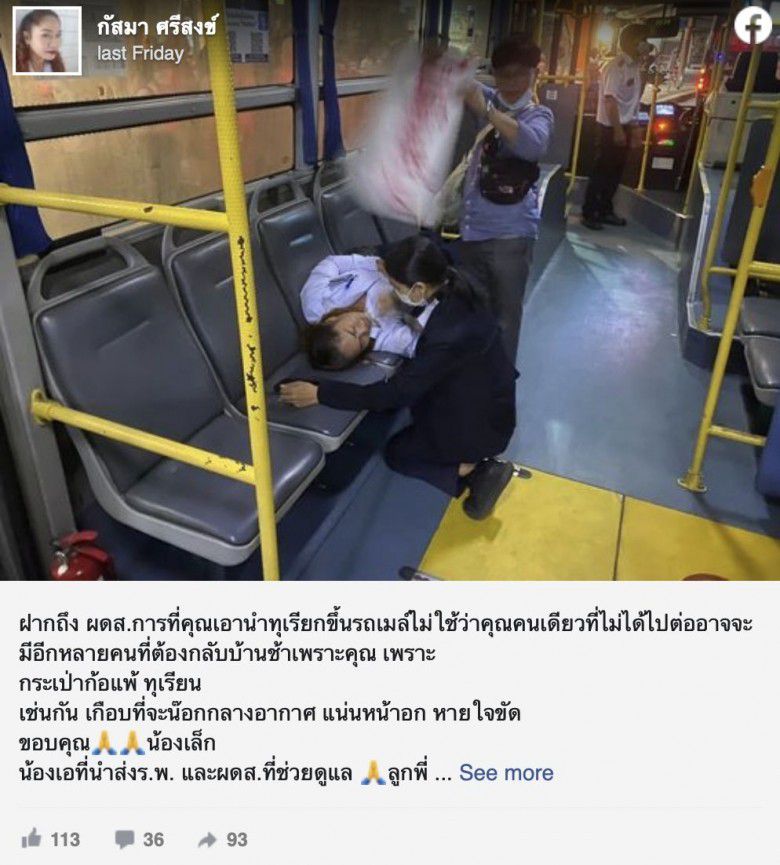 Seorang kondektur wanita di Thailand pingsan usai adanya penumpang membawa durian ke dalam bus (via facebook)