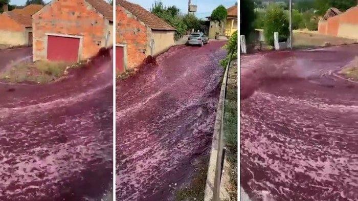 Kota São Lourenço do Bairro, Anadia, Portugal, kebanjiran anggur merah (via twitter)
