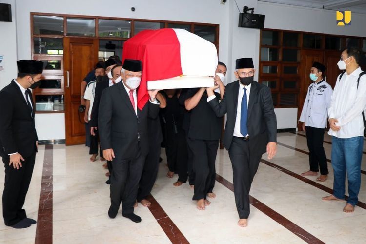 Jenazah Hermanto Dardak mertua Arumi Bachsin dimakamkan di TMP Kalibata, Jakarta pada Minggu (21/8). Banyak kerabat dan keluarga mengantarkan mantan Wakil Menteri Pekerjaan Umum tersebut ke tempat peristirahatan terakhirnya. Putra Hermanto yang juga suami Arumi, Emil Dardak menceritakan kondisi jenazah terakhir sang ayah.