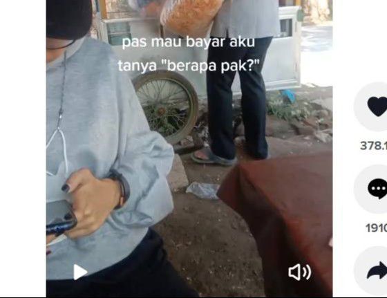 "Jadi ceritanya aku beli bubur sama temanku. Kita beli dua mangkok dan sate usus. Pas mau bayar aku tanya berapa pak? Terus bapaknya jawab Rp 13 ribu saja neng," bunyi keterangan di dalam video.