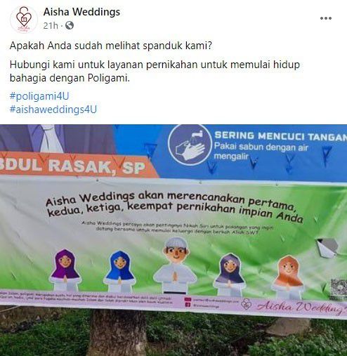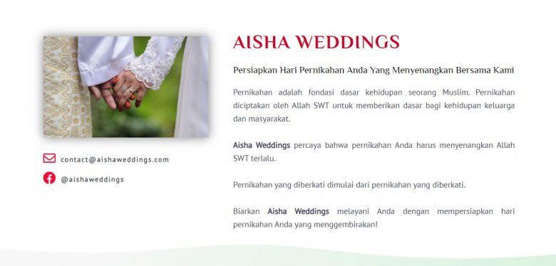 "Aisha Weddings percaya akan pentingnya Nikah Siri untuk pasangan yang ingin datang bersama untuk memulai keluarga dengan berkah Allah SWT. Di atas segalanya, kami dengan ketat mengikuti dan mematuhi ajaran Al-Quran sebagai kata suci Allah SWT," tulis Aisha Weddings.