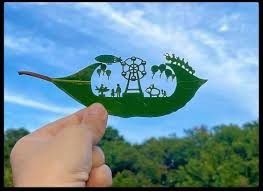 Keahlian mengukir pada daun pun pada dasarnya sama kayak bikin papercut atau ukiran pada kertas.