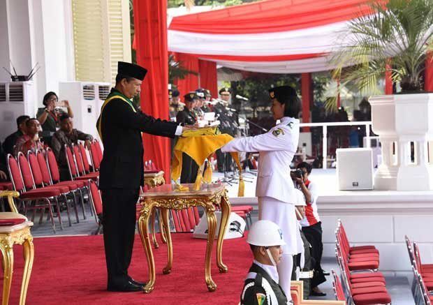 Salah satu momen penting dalam upacara peringatan Hari Ulang Tahun (HUT) Kemerdekaan Republik Indonesia (RI) ke-73 di Istana Negara adalah saat pengibaran bendera. Selain memiliki kandungan sejarah yang kuat, momen ini juga menampilkan siapa anggota pasukan pengibar bendera pusaka (Paskibraka) yang akan membawa baki berisi bendera Merah Putih.
