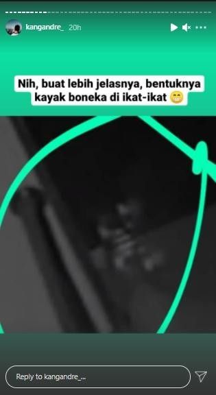 Begini tulis akun @kangandre_ itu di IG Story "Kamu lihat sesuatu ga? Kayak ada ikatan boneka gitu? Semalam abis ruqyah. Munculah ini di CCTV. Abis ruqyah ada tetesan darah.”