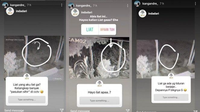 Tak hanya sosok pria tadi. Indadari juga mengaku melihat penampakan pocong dan pasukan sihir di CCTV luar rumahnya.