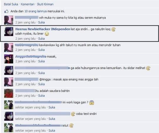 Beberapa komentar di Facebook mengenai ritual pemanggilan kembaran gaib ini (m.kaskus.co.id)